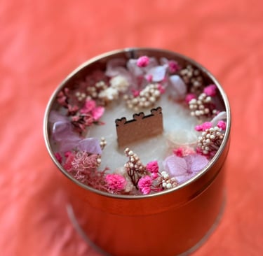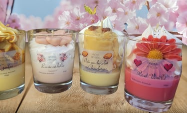 La boutique propose une gamme variée de bougies parfumées : classiques, gourmandes, fleuries avec des fleurs séchées naturelles, des bougies de lithothérapie, ainsi que des fondants parfumés, fondants crémeux et des décorations en jesmonite.