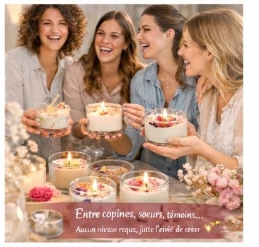 Envie d’un moment créatif et original ? Réserver un atelier bougie unique pour adultes et enfants : l’animation créative et parfumée qui transforme anniversaires, EVJF et tous vos événements en souvenirs inoubliables. A partir de 20€ par enfant et 40€ par adulte